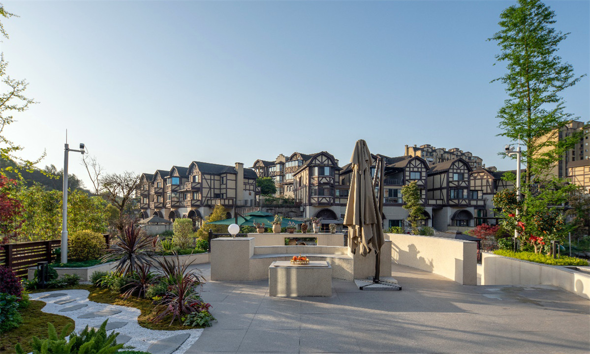 设计师实现了女企业家的田园梦,通过周围山水田园的空间园林设计,打造了一个女企业家度假休闲的世外桃源。设计说明:该案例位于泸州凤凰湖(AAAA景区)景区内,作为全家人度假休闲及未来养老的居所。别墅的主人王女士是一位优秀的企业家,家庭成员有一对儿女及业主母亲,她对生活充满着热爱。设计师精心打造的这套山水田园花园别墅,在夕阳的光影中如此梦幻。屋内生活家居配套齐全,各种休闲娱乐功能区搭配,满足人性爱享受的嗜好。