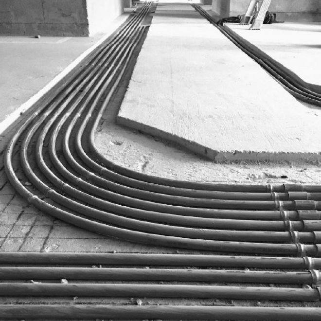 ♦ 根据不同用途和分类要求,定位后底线必须水平,间隔一致,相邻线盒之间必须线管连接。