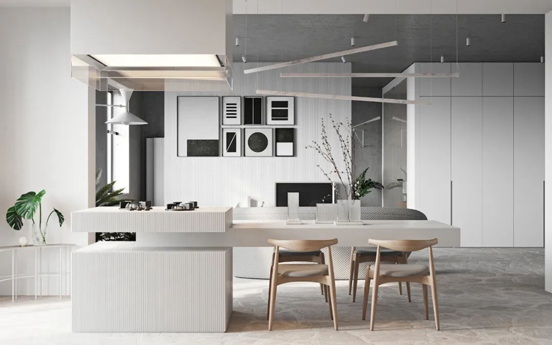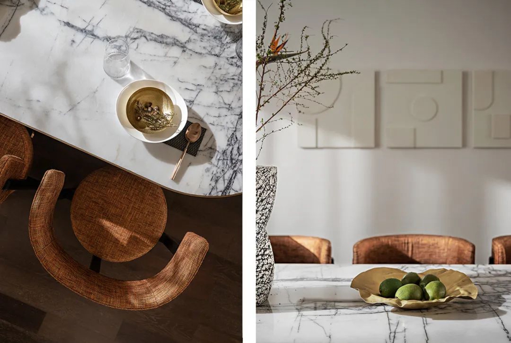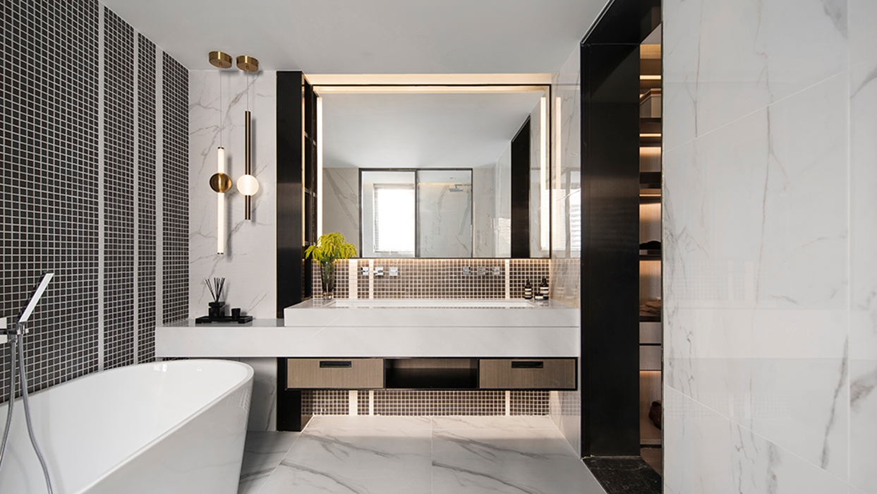 设计师通过丰富的设计经验,将材质的不同质感进行布局与搭配,使线条、色彩、体块等方面完美融入到这个空间中,在呈现空间艺术的同时也兼顾到了功能性。 家的本质是内心的归属。在都市繁华中独善其身,寻得一份宁静。城市现代化的高速发展,在喧嚣中拥有一方守静之地,心灵的栖居之所。设计为功能空间注入灵魂,在基于物质实用性的基础上带来审美的变化。似乎已成为每个城市人的期待。 这里承载着家庭欢聚、休闲、社交的功能,宽厅赋予客厅可居、可学、可玩的多种属性。模糊了常规的空间界限,使得整个空间饱满流畅。凝练又有艺术感染力的空间语言,呈现出雅奢精致的氛围。 空间色以现代风格黑白灰为主基调,同时加入暖棕、金色提亮空间。精致的摆设,艺术品加持,搭配柔软的沙发、温和的灯光,让大尺度的豪华空间也不失家的舒心与温暖。 轻风翻动起窗纱,青苔长在湿赭色的树干上、种满绿植的露台上。呼吸吐纳间,尽是自然的韵律与流动。在阳台坐着,晒太阳,看着,看很长时间,好像在想点什么,好像没想什么。