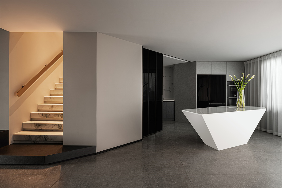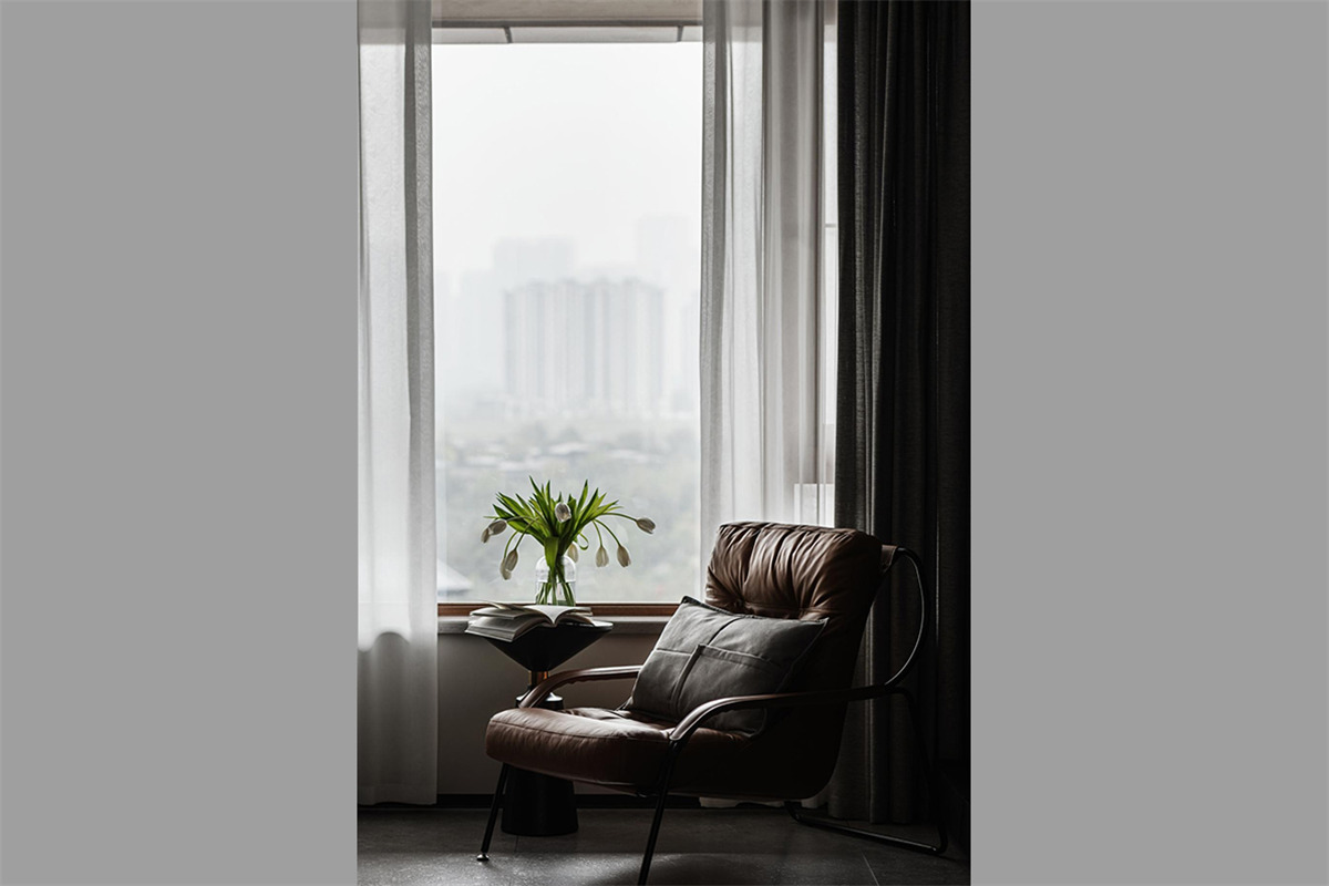越是简单的设计,越需要精湛的细节和工艺作为支撑,空无的设计,往往体现设计的极致与追求。开放的空间和空隙使斑驳的光线投射到客厅,将生活的气息与自然相融合,既有诗意也是生活。阳光穿过白色的梦幻帘带来独特的轻盈感和呼吸感。